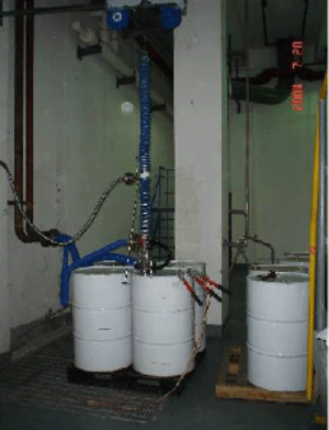 The EHS Manway Nitrogen Purge Hopper serves as an engineering control to help maintain low oxygen concentrations within a process vessel during the manual addition of solids. This device utilizes a safe, pneumatically opened flap valve that reduces the amount of time the tank is opened to the room environment. A full perimeter annular ring injects nitrogen at dual flow rates to dilute oxygen concentrations in the manway region of the tank. This engineered system has proven to maintain oxygen levels to below 5% for the duration of a charging process.