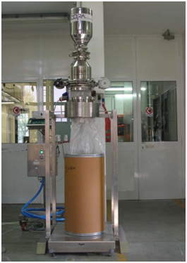 The Inflatable / Deflatable ring Dosing System, allows the operator to lock the bag (already placed inside the container) and to perform the unloading of the product as long as the weight is not reached. Once the weight is reached the operator by the control panel unlocks the bag and the operator can proceed to close it. The working cycle of this system is similar to the Continuous Liner Discharging System, but the closing of the bag is done manually by the operator once it has finished unloading. On this type of system, a dust suction system can be installed which further reduces operator contact with the product.