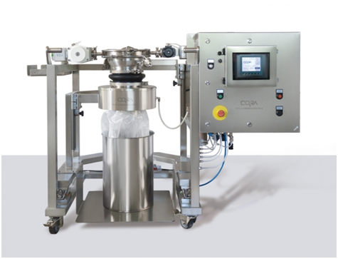 The use of this system is very simple and efficient as once the working cycle of the dryer is finished the operator places the system below the discharge outlet of the drier and through the adapter connects the system to the machine, at this point the system is ready to be used.